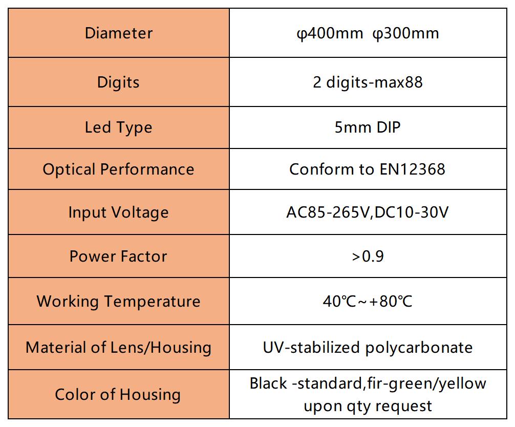 Wide operating voltageTransparent polycarbonate optical lens -impactresistant.Anti-phantom effect minimizedoptimal viewing angle High intensity LED light source -low energy consumption 5mm LED (DlP)Long life cycle -more than 80,000 working hours Highly durablepolycarbonate housing, UV-lightresistant.Modular design-easy installationand maintenance.Easy access using ofwingnuts open system.Fixation systemwith L-shaped/arm-shaped mountingbracketsCompliance with CE,RoHS,EN12368,IS09001.